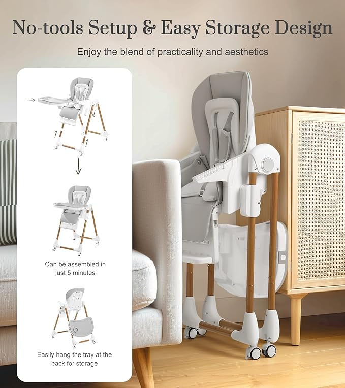 - QUICK ASSEMBLY & COMPACT DESIGN: Assemble in minutes — no extea tools needed. With a quick-fold design and a side buttons, making the foldable high chair collapse smooth and effortless, storing away in a snap. Perfect for small spaces, or everyday use. Thoughtfully designed to be a cherished part of your family’s everyday moments