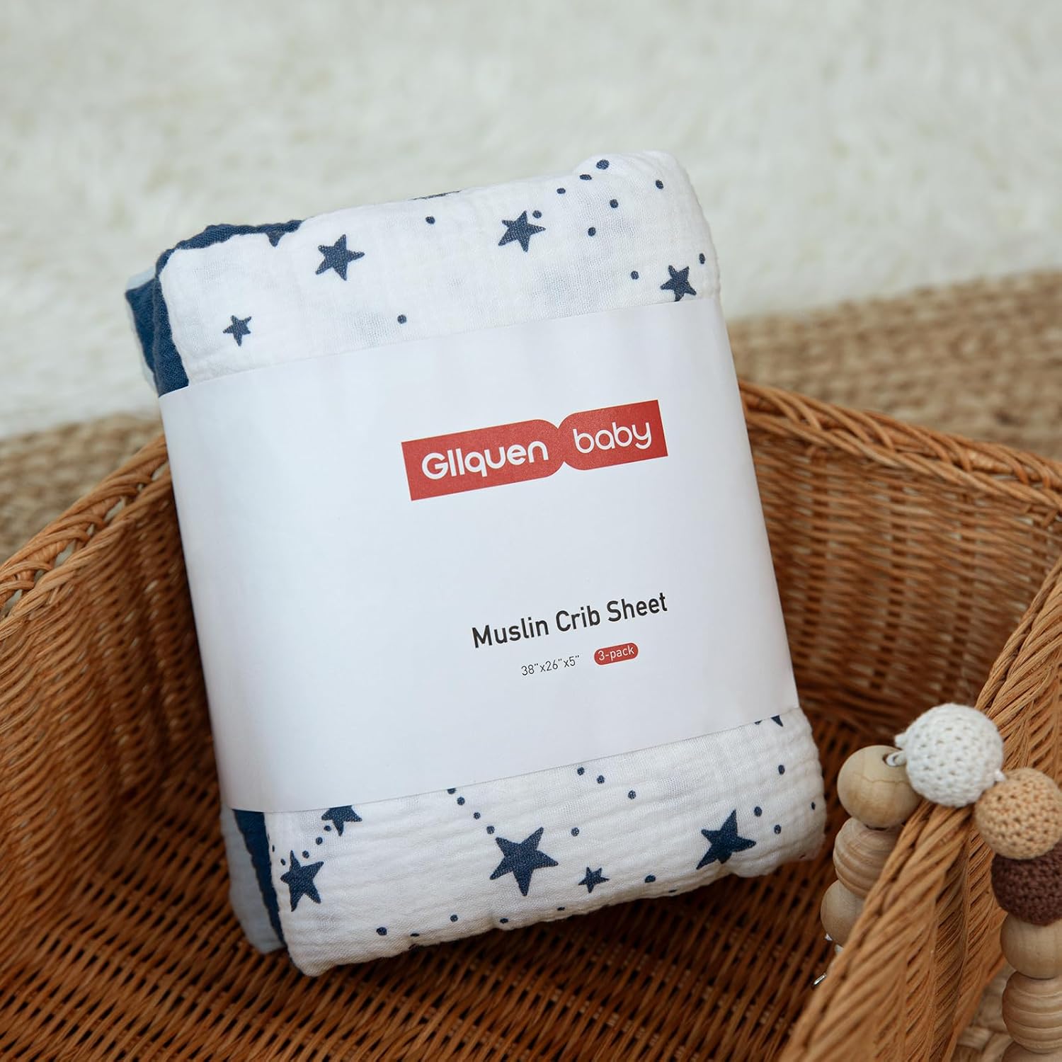 - MUSLIN COTTON: Are you looking for the perfect baby bed sheets? Look no further than our Gllquen Baby pack and play sheets! Made with 100% muslin cotton, these baby sheets have excellent air permeability and moisture-absorbing properties that keep your baby's skin dry and comfy, providing comfortable care and a good night's sleep. Rest assured, every product meets the OEKO-TEX Standard 100 and is safe for babies