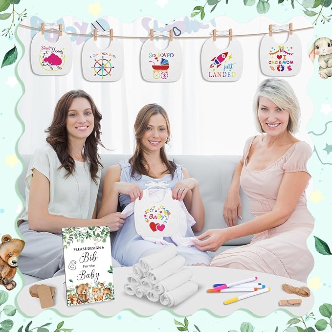 - Creative & Fun Mess-Free Activity: Transform your celebration into an engaging baby shower games experience. Guests can use the reusable stencils and bright, non-toxic markers to decorate the blank bibs with custom messages and adorable patterns, making this a relaxing and creative DIY event. This fun activity doubles as a fantastic display for your baby shower decorations, showcasing your guests' artistic talents and well wishes for the new arrival