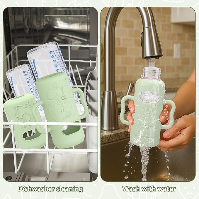 - ✅Easy Grip with Handles - Ergonomically designed with side handles, silicone sleeves for Dr. Brown's Baby Bottles help babies hold the bottle more comfortably and securely. Ideal for when babies start to hold bottles on their own