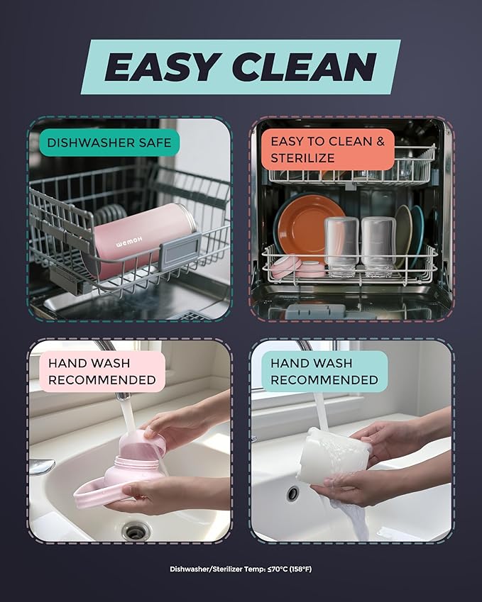 - [Cleaning Instructions] Bottles: Suitable for high-temperature sterilization and dishwasher cleaning (place on top rack); Milk storage container body, lids & cooling rings: Hand wash recommended (no tools required)