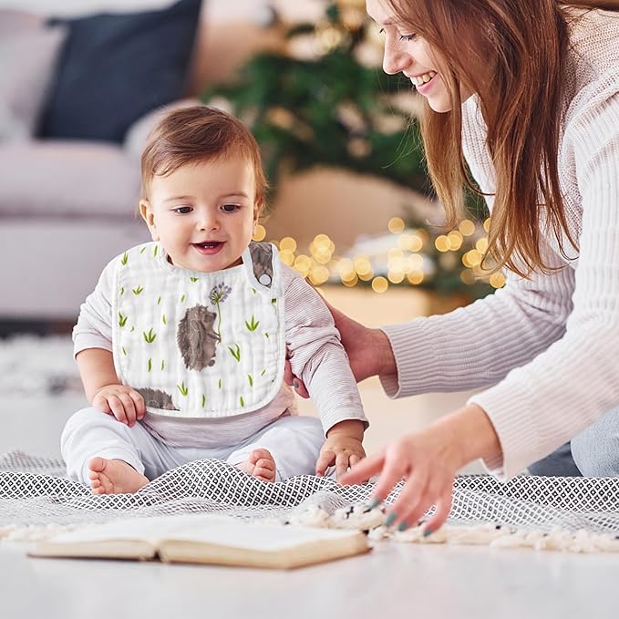 - Soft and Absorbent: Our baby bibs are made of 6 layers of cotton muslin and are lightweight and breathable. It has good absorbency, which effectively collects and absorbs liquids and helps keep baby's clothes and skin dry. This soft material will make your baby feel comfortable and your baby's sensitive skin will be well cared for.