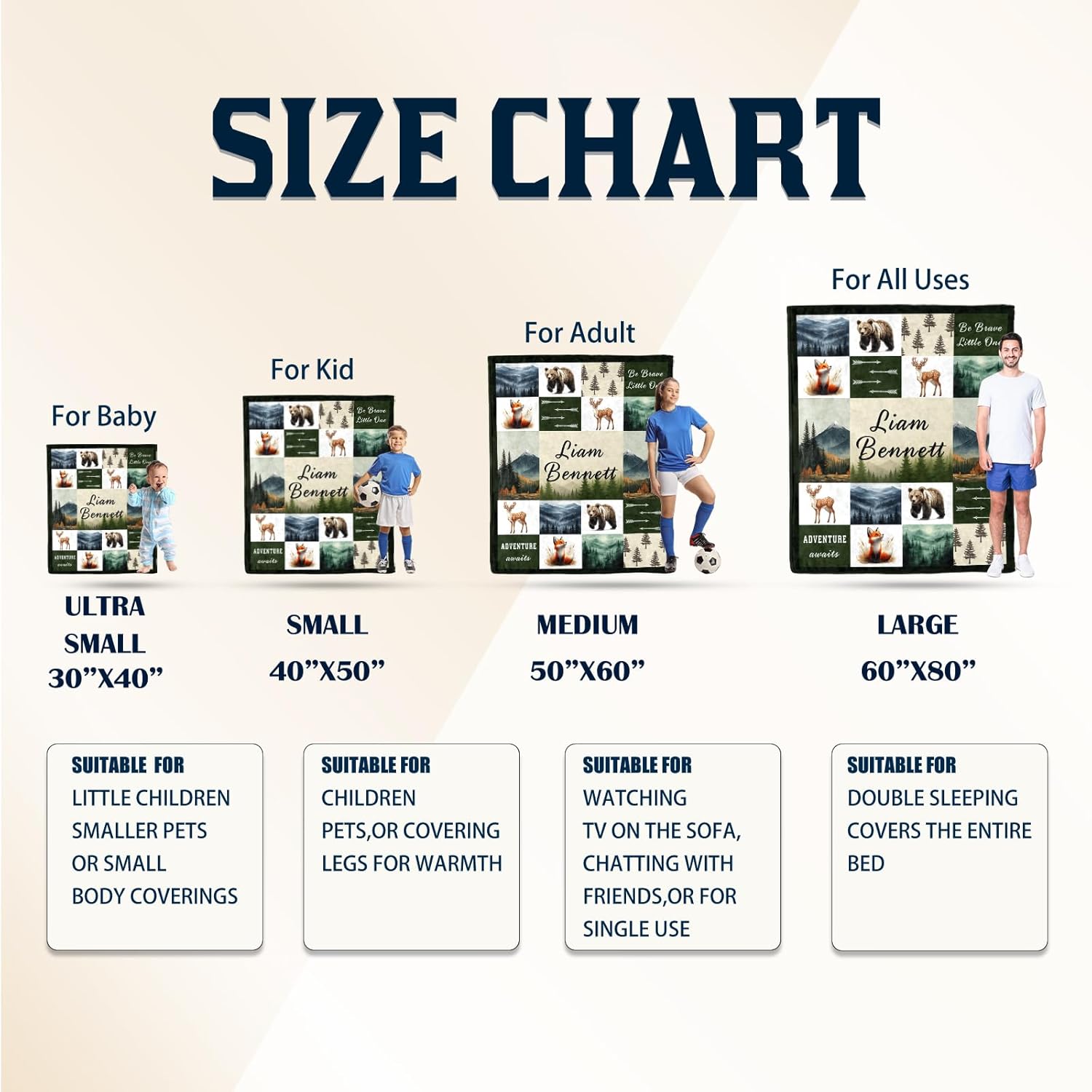 - Multiple Sizes & Colors Baby Blanket -- custom name blanket are available in 5 colors and 4 sizes: 30"x40" , 40"x50" , 50"x60" (single beds), 60"x80" (family movie nights).Select your loved one’s favorite shade to create a treasured keepsake that infuses their world with color. Thoughtfully crafted for both gifting and everyday cuddles, these blankets grow with your child while keeping memories vivid wash after wash.