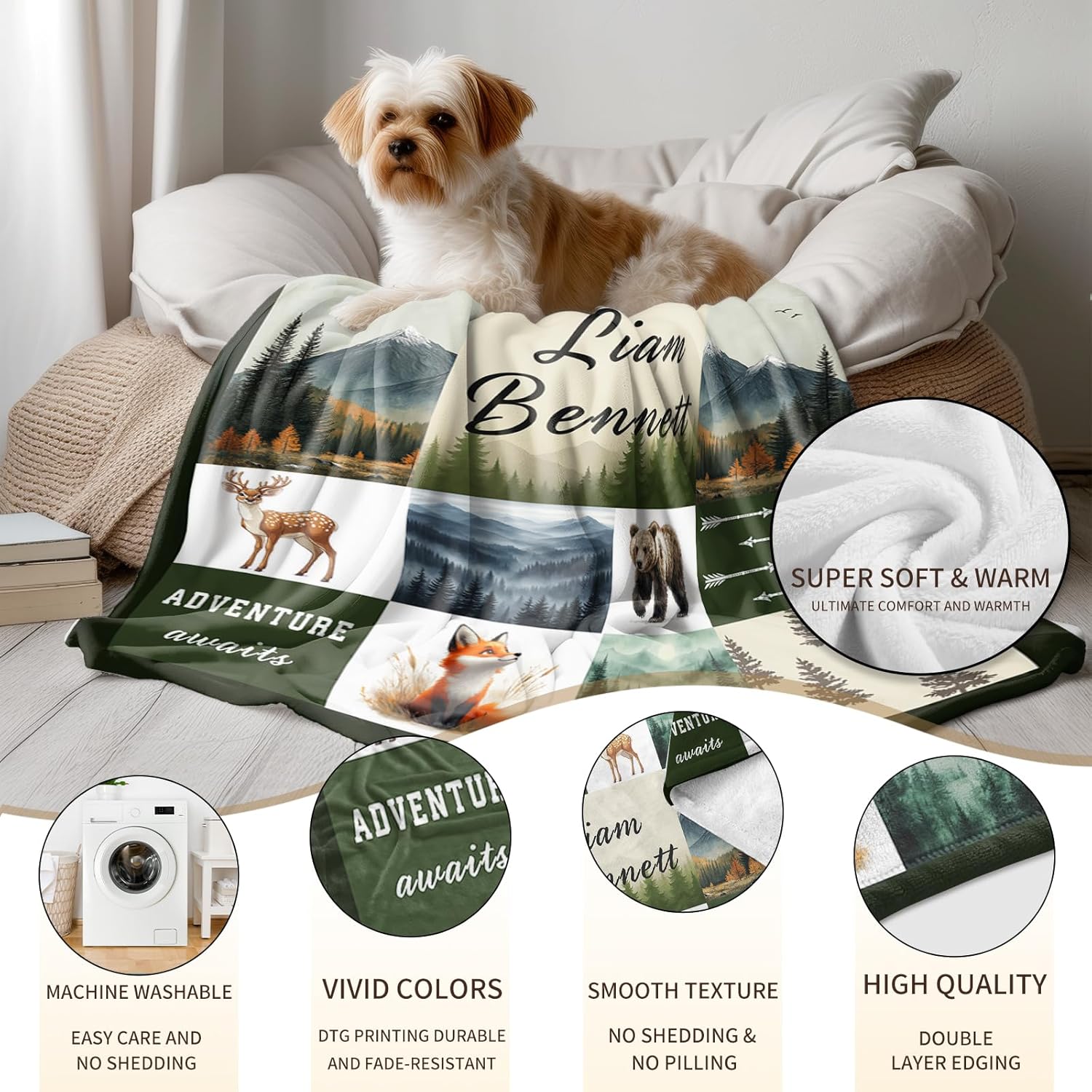 - Personalized Baby Blanket -- Custom baby blanket with name crafted from 100% premium anti-pilling, hypoallergenic fabric with a plush higher-density wool blend for superior softness and cozy thickness. Each custom-named blanket is safely machine washable or gentle hand wash in cold water. Our advanced HD printing technology preserves photo clarity and color vibrancy through countless washes, using odor-free inks that stay ultra-gentle on delicate skin.