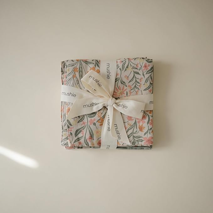 mushie Muslin Organic Cotton Washcloths 5-Pack (Pastel Blooms Combo) | Soft Wipes for Baby Cleanups and Bathing