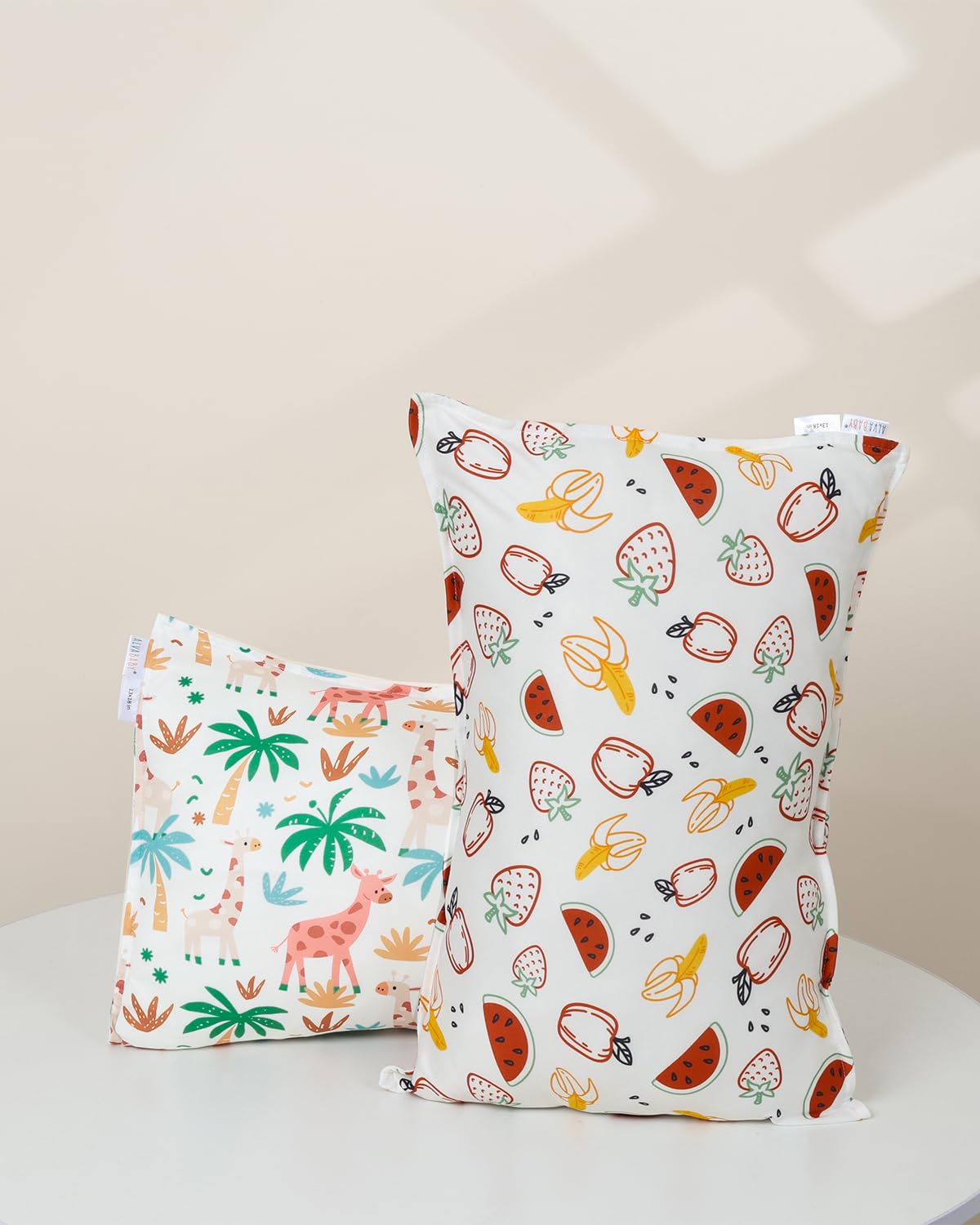 - Package:2 pieces of pattern cute and funny printed toddler pillow cover only,not included pillow.We uses only polyester&spandex and breathable to provide your toddler the most comfortable feeling while him/her is sleeping.The perfect pillowcase for family or friends for girls or boys.