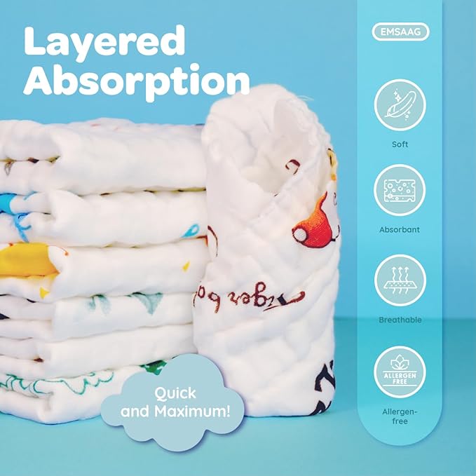 - Absorbency Feature: Breathable muslin weave construction allows quick absorption and efficient drying