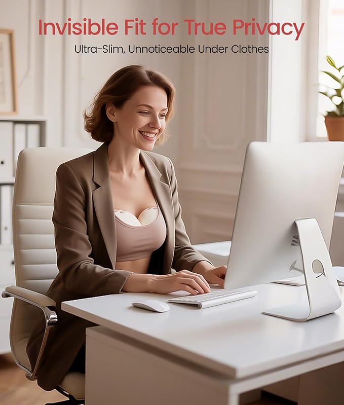 - Ultra-Discreet & Leakproof: Ultra-slim design fits comfortably in-bra for hands-free privacy anywhere. Double-seal flange prevents leaks. The wearable pump allows you to pump confidently at work or on the go with complete privacy and hands-free convenience