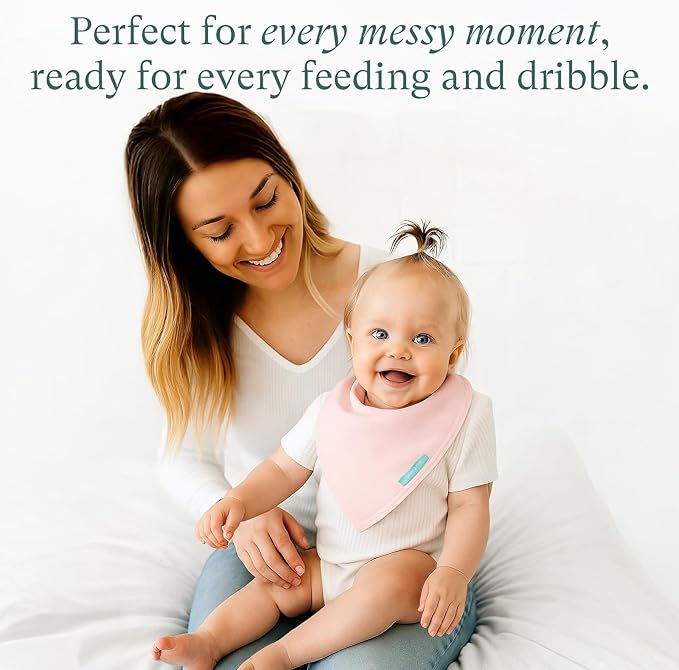 - Adjustable Fit for Growing Baby: Each bandana bib features two secure snap closures, offering a comfy, customizable fit for babies at every stage—from breastfeeding to transitioning to solid foods. No scratchy Velcro, just easy wear all day long.
