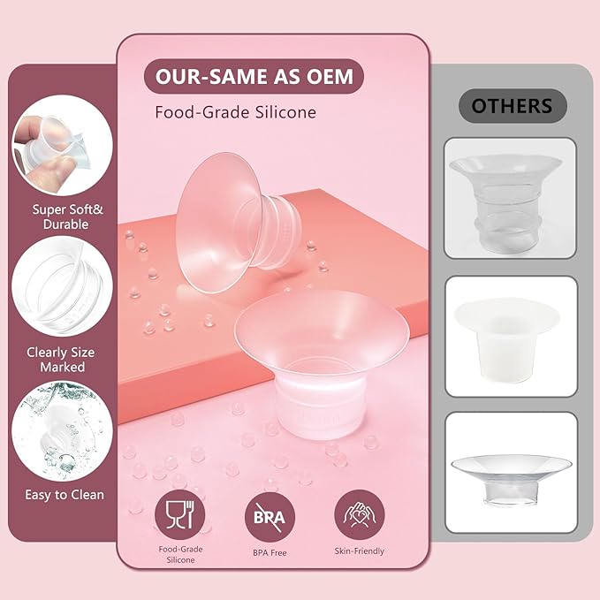 - 【 Comforty Fit &Enhanced pumping efficiency】: These soft silicone flange inserts are designed to minimize discomfort while maximizing milk output. The comfortable and soft silicone material is designed to stimulate milk flow and increase comfort during use.With the added benefits of reduced pain and increased milk output, Achieve enhanced breast pumping, reduce pumping time, and maximize milk production by using the essential flange inserts for your breast pump.