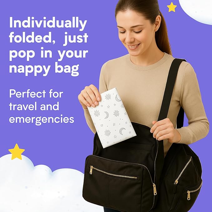- SECURE & SLIP-RESISTANT: 4 built-in sticky tabs on the back help keep each pad firmly in place. No slipping, sliding, or bunching, even during wiggly changes. At home, on the go, or at a public changing station, you can count on a stable surface every time.