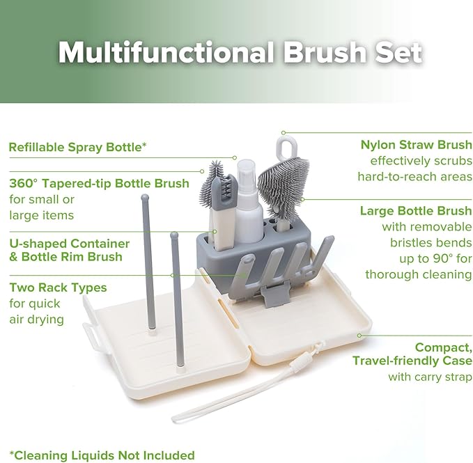 - πππ-ππ-πππ ππππππππ πππ π ππ ππ-πππ-ππ πππππππ:This complete baby bottle brush set includes a bottle brush, straw brush, U-shaped rim brush, nipple cleaner, and refillable soap dispenserβall neatly packed in a compact travel case to keep feeding gear spotless anytime, anywhere.