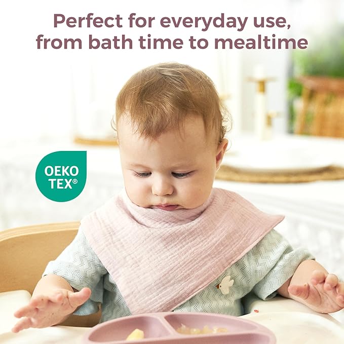 - 【5-in-1 Multi-Use Possibilities】Generous 10x10 inch size - perfect for bathing, wiping, and on-the-go use as baby bath washcloth, baby bib, baby burp cloth, baby face towel or feeding cleaner. The 5-pack allows for easy rotation while the familiar wachcloth brings security to both baby and mom, making parenting life easier and more joyful