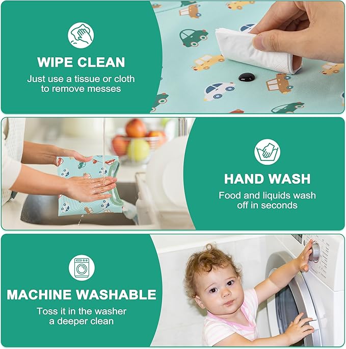 • Easy To Clean: The baby feeding bibs are made of lightweight and waterproof fabric and can be easily wiped with a damp cloth after daily use to quickly remove stains. For deep cleaning, the full sleeve bib can be hand washed in cold water or machine washed on gentle mode. It is recommended to close the Velcro before washing to prevent it from losing stickiness. The baby apron for feeding can be dried naturally, dries quickly, is not easy to deform, and is odorless