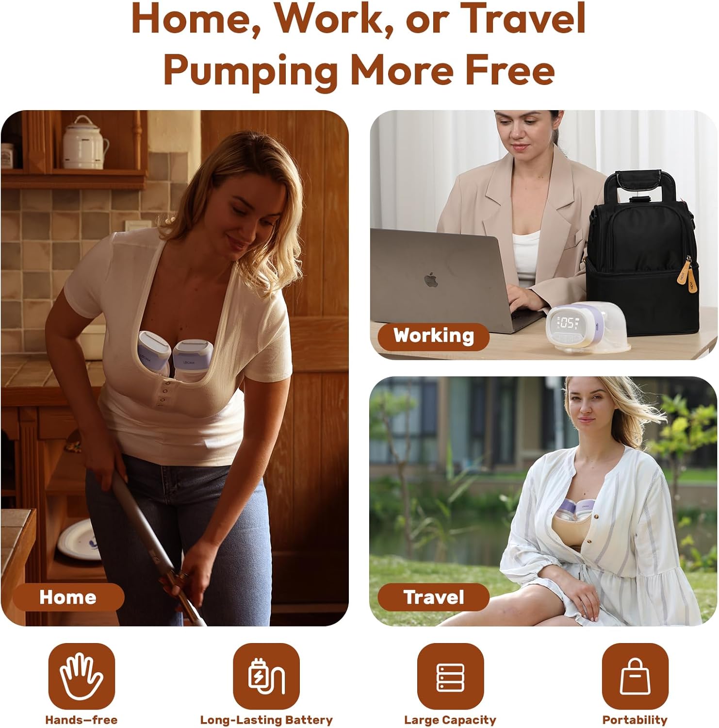- LONG-LIFE BATTERY- Lucina hands free wearable electric breast pump with 1500mAh battery, one full charge supports more than 180minutes of use/6-8sessions. No need to worry about frequent charging during daily use or going outside or in travelling.