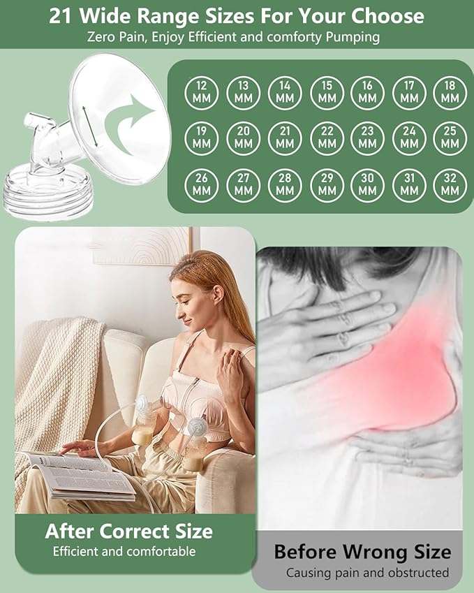 - 【Multiple Flange Sizes, Improving Efficiency】:The upgraded flange is wide-neck design,smooth angle and long tunnel, creating better fit and promoting effective during pumping. And a variety of sizes are available: 12mm, 13mm, 14mm, 15mm, 16mm, 17mm, 18mm, 19mm, 20mm, 21mm, 22mm, 23mm, 24mm, 25mm, 26mm, 27mm, 28mm , 29mm, 30mm, 31mm, 32mm.