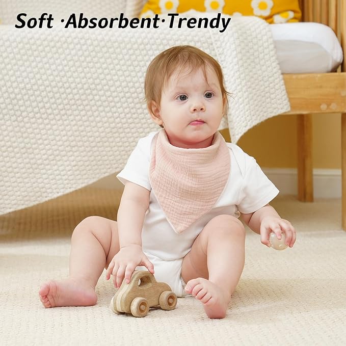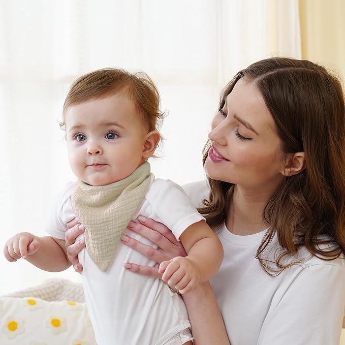• Wide Applications: These soft muslin baby drool bandana bibs can be used as teething bibs, burp cloths, washcloths, wipe cloths, and even a stylish handkerchief on journey.