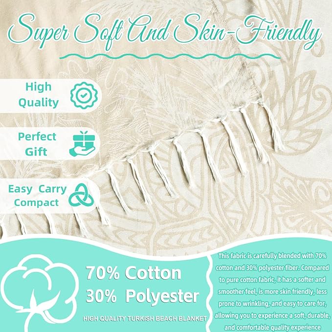 - OVERSIZED and COMPACT : Upgrade your beach game with our Türkiye Cotton Blanket Beach Towel, a whopping 71 x 79 inch of pure comfort. Perfect for family beach days or cozy couple camping. Easy fold design means more room in your suitcase for fun. Grab yours now and make every adventure a plush affair