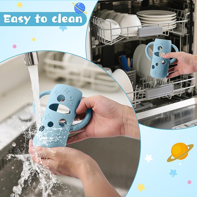 - Easy to Clean:The surface of the silicone bottle protector is smooth and not easy to hide dirt, so it is very convenient to clean. Parents can put the protective sleeve into boiling water for easy sterilization and cleaning, to ensure that the baby's supplies hygiene and safety