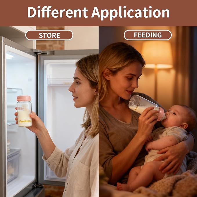 - Premium Borosilicate Glass: Safe & Shatter-Resistant. Crafted from food-grade borosilicate glass, our bottles are 100% BPA-free, lead-free, and free of harmful substances—no plastic odors or residue seeping into breastmilk. The upgraded shatter-resistant design withstands daily drops, avoiding safety risks from broken glass, while maintaining glass’s natural ease of cleaning. Perfect for refrigeration, heating, and room-temperature storage, keeping breast milk safe at every step