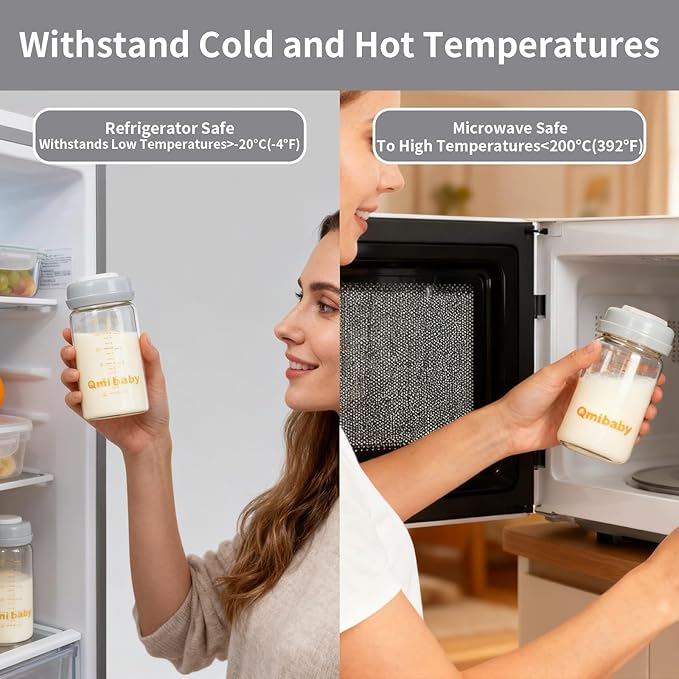 - Premium Borosilicate Glass: Safe & Shatter-Resistant. Crafted from food-grade borosilicate glass, our bottles are 100% BPA-free, lead-free, and free of harmful substances—no plastic odors or residue seeping into breastmilk. The upgraded shatter-resistant design withstands daily drops, avoiding safety risks from broken glass, while maintaining glass’s natural ease of cleaning. Perfect for refrigeration, heating, and room-temperature storage, keeping breast milk safe at every step