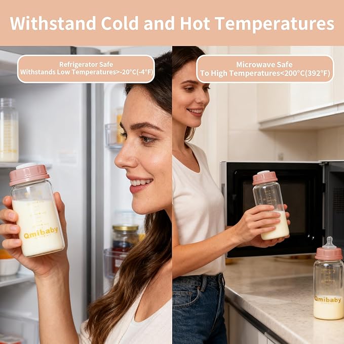 - Premium Borosilicate Glass: Safe & Shatter-Resistant. Crafted from food-grade borosilicate glass, our bottles are 100% BPA-free, lead-free, and free of harmful substances—no plastic odors or residue seeping into breastmilk. The upgraded shatter-resistant design withstands daily drops, avoiding safety risks from broken glass, while maintaining glass’s natural ease of cleaning. Perfect for refrigeration, heating, and room-temperature storage, keeping breast milk safe at every step