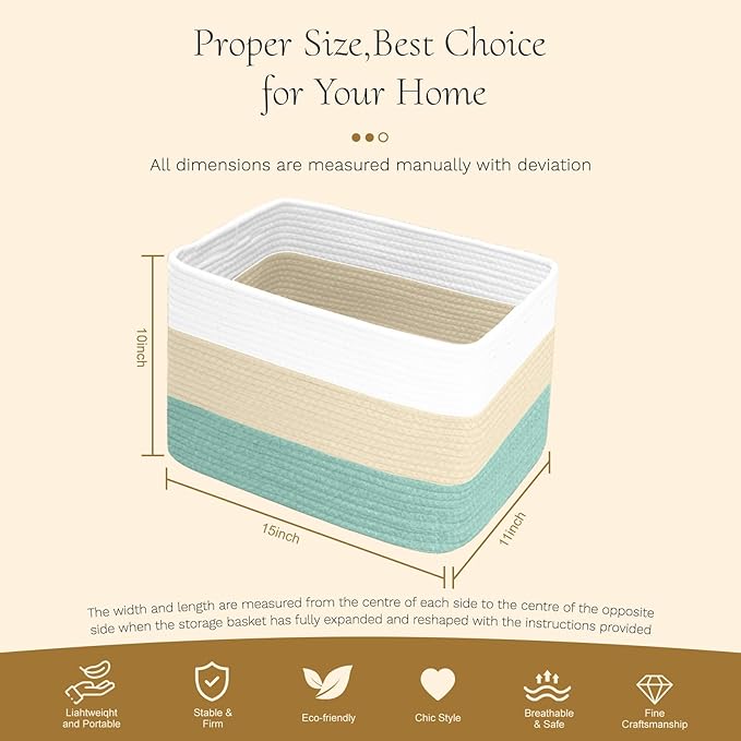 - Soft Yet Sturdy & Safe Material: Made of premium braided cotton rope, these woven baskets are sturdy enough to hold heavy items (toys, books, blankets) yet soft for kid- and pet-friendly use. No sharp edges or harmful materials!