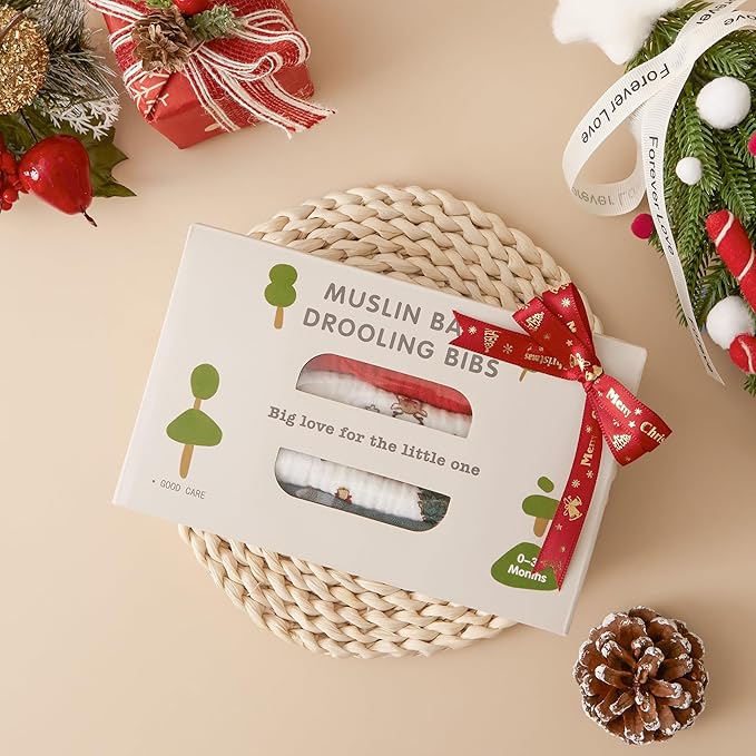 - 🎄5 Festive Designs + 1 DIY Blank Baby Bibs——Little Blessing, Christmas Tree Print, Cozy Brown, Merry Green, and Reindeer Print. DIY Blank Baby Bibs - Personalize it yourself! Add your baby’s name, a special date, or a festive message with DIY embroidery. Make it truly one-of-a-kind! Note: The white bib is left plain intentionally for those who love crafting! We do not offer embroidery services – but we can’t wait to see what you create!