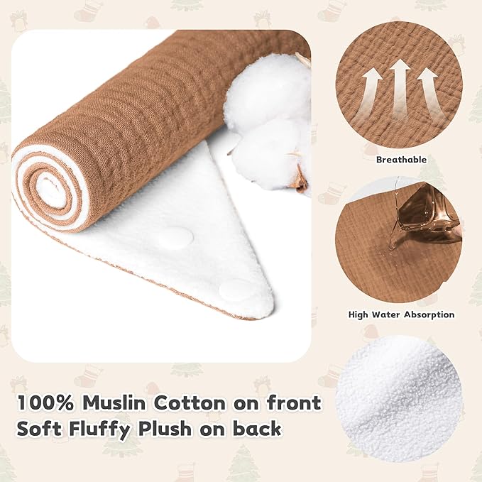 - Soft & Superior Absorbency: Our Susurration Muslin Baby Drool Bibs are crafted from 100% cotton muslin on the front, they are backed with water-resistant soft plush to ensure maximum absorption with a skin-friendly, gentle touch for your baby's skin. The dual-layered design ensures both you and your baby remain free from wet clothes all day long.