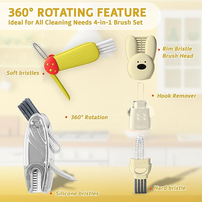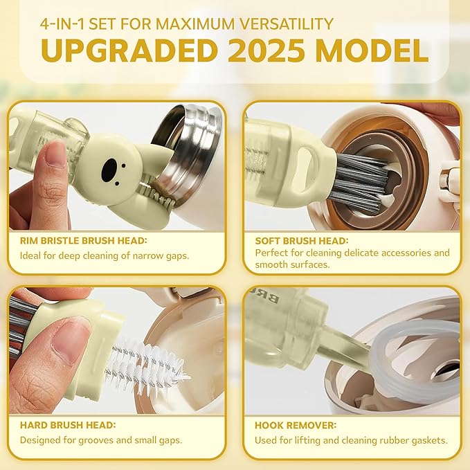 - 【REACHING WHERE OTHERS CAN'T – A BRUSH THAT UNDERSTANDS】Not all brushes are created equal. These aren’t just gadgets; they’re your allies against stubborn grime. With heads that slip into straw holes, curl into bottle lids, and slide into rubber seals, this set becomes your invisible hand, cleaning gently yet completely.