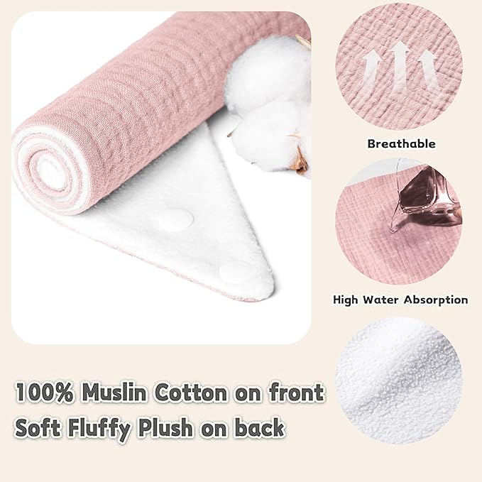 - Soft & Superior Absorbency: Our Susurration Muslin Baby Drool Bibs are crafted from 100% cotton muslin on the front, they are backed with water-resistant soft plush to ensure maximum absorption with a skin-friendly, gentle touch for your baby's skin. The dual-layered design ensures both you and your baby remain free from wet clothes all day long.