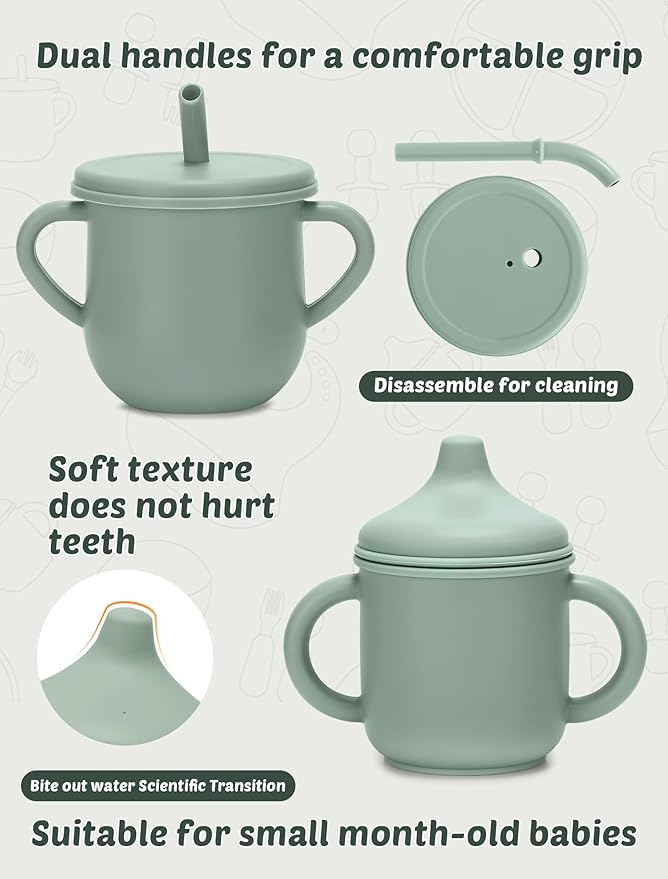 - Food Grade Silicone: Our baby straw cups and sippy cups made of food grade silicone, do not contain BPA, PVC, and other harmful substances, to help protect baby's developing teeth while allowing for a nonslip grip to make movements to the mouth more successful.