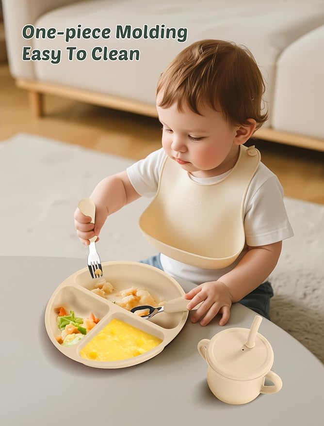 - Easy-Grip Handles & Hassle-Free Cleaning:The easy-to-hold handles are perfect for little hands to grasp, promoting self-feeding skills. All parts are dishwasher safe (top rack), and the cups can be completely disassembled without hard-to-reach corners, making cleaning a breeze for busy parents.