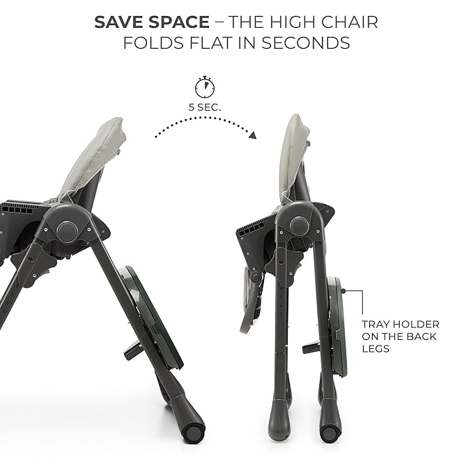 - ✅ FUNCTIONAL: TUMMIE is a foldable 2-in-1 high chair. It's suitable for children from birth – simply open the footrest and backrest, replace the tray with the toy bar, and place the ergonomic insert for newborns.