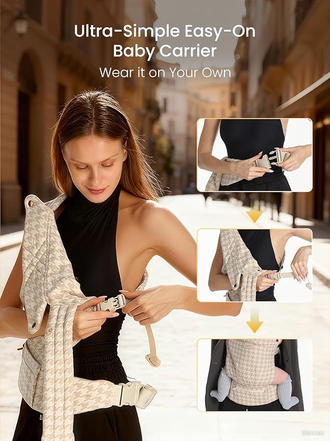 - Put on Baby Carrier by Yourself: Designed with absolutely no fuss, this minimalist baby carrier redefines ease. Put it on in seconds with just four intuitive steps-no cumbersome clips, no complicated wrapping. It's by far the simplest baby carrier on the market and a must-have on your baby registry list.