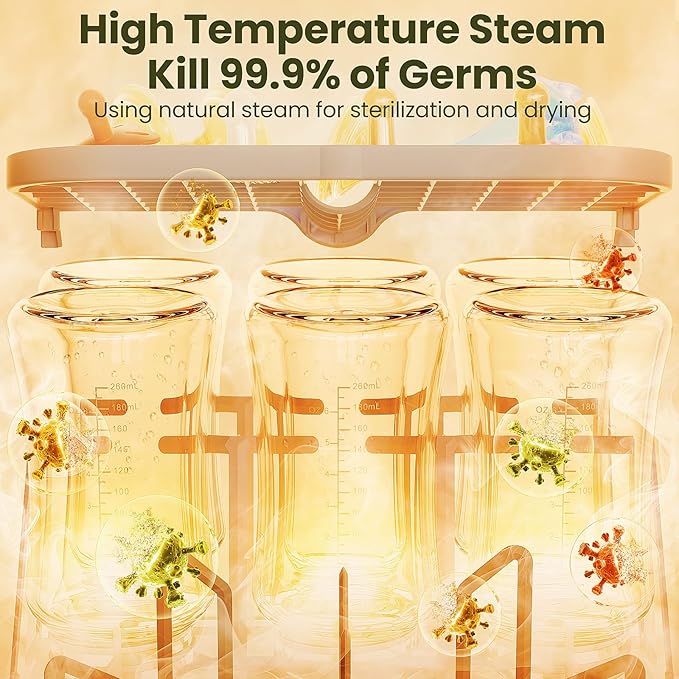 - Safe&Low Noise Operation: Provides complete care from high-temperature steam sterilization and hot air drying to 72-hour aseptic storage, ensuring that every bottle is dry and clean, ready to use. And the powerful motor ensures low noise during operation and does not disturb the rest of babies and family members