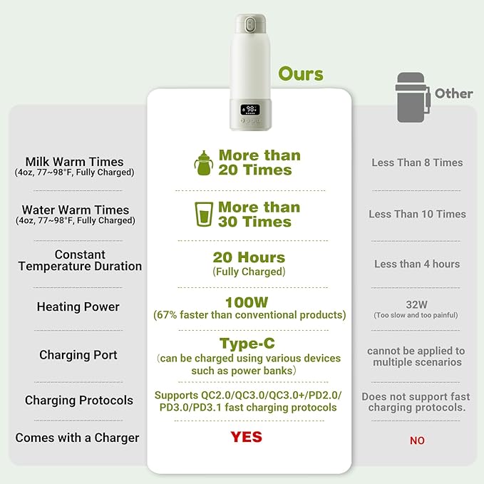- 🛡️ * Premium Safety Features * - 316L stainless steel construction with all food-grade safe materials. Our baby bottle warmer portable ensures complete safety for your infant's feeding needs.
