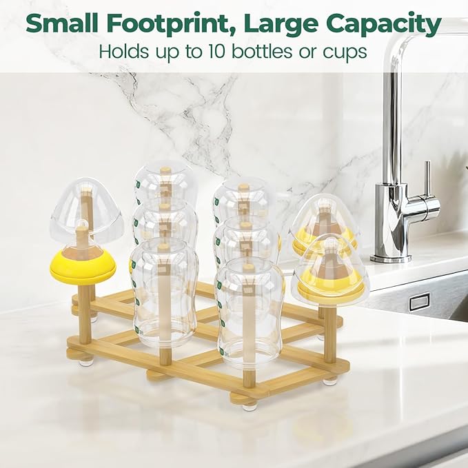 - Large Capacity, Neat Countertop: Holds up to 10 baby bottles, glass water bottles, or feeding accessories in one place. Each rack arm is thoughtfully spaced to maximize capacity while maintaining balance, helping you keep your countertop tidy and effortlessly organized