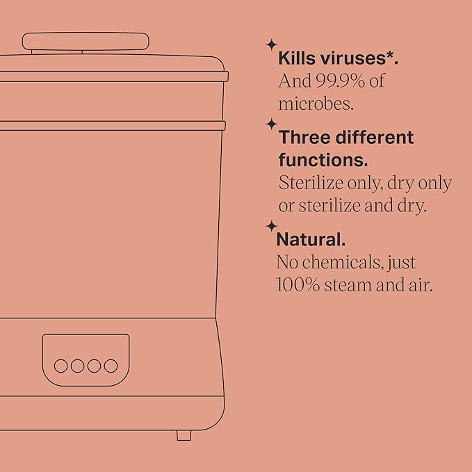 - Tommee Tippee Sterilizer Kills Viruses* and 99.9% of Microbes: Uses pure steam to kill 99.9% of harmful microbes and viruses, so you can protect them without using chemicals