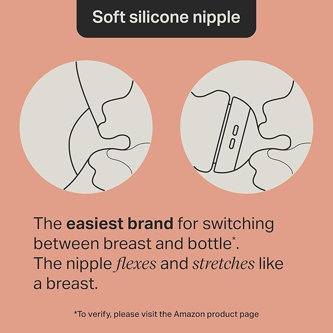 - Breast-Like Nipples: Distinctive, silicone, breast-like nipple feels closer to skin and flexes like mom for a comfortable feed and supports in the transition from breastfeeding to bottle feeding