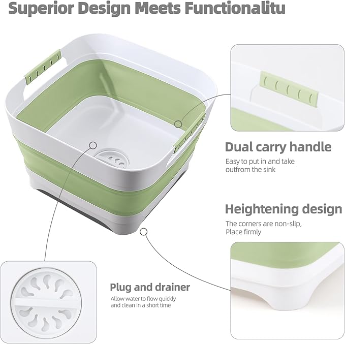 - Versatile & Multifunctional: Designed for everyday tasks, this collapsible bin is incredibly versatile. Use it as a dish pan, baby bottle organizer, laundry basket, foot soaking tub, camping sink, beverage tub, puppy bath tub, storage container, and much more