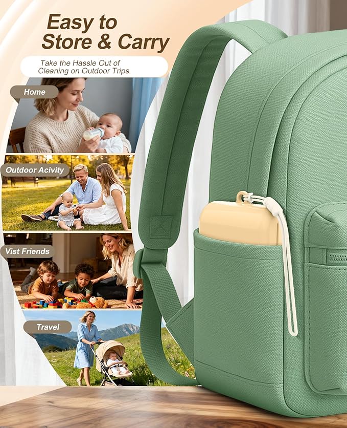- Built-In Travel Bottle Drying Rack: We’ve added a thoughtful built-in portable drying rack to this set. It quickly air-dries multiple items at once—from bottles and nipples to food cups, breast pumps, and sippy cups-baby travel essential.