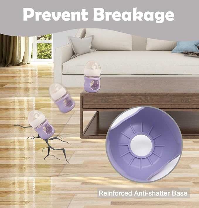 - Noise Reduction & Thermal Insulation - Thick and flexible silicone cushions the glass bottle, dampening clinking sounds on hard surfaces for quieter nighttime feedings. It also provides excellent thermal insulation, making bottles safer and easier to remove from warmers without scalding, and keeping milk warm longer, ensuring comfort and peace during every feeding.