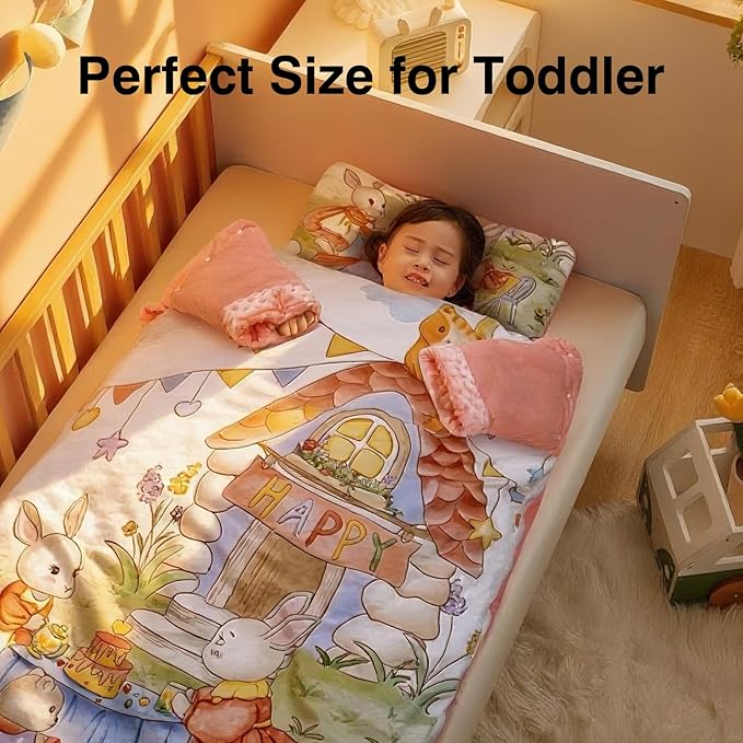 Reidio 1Pcs Toddler Pillow Double Sided Warm Plush & Minky Dot Fabric Kids Pillow Cute Small Pillow Machine Washable (#W-Rabbit Pink)